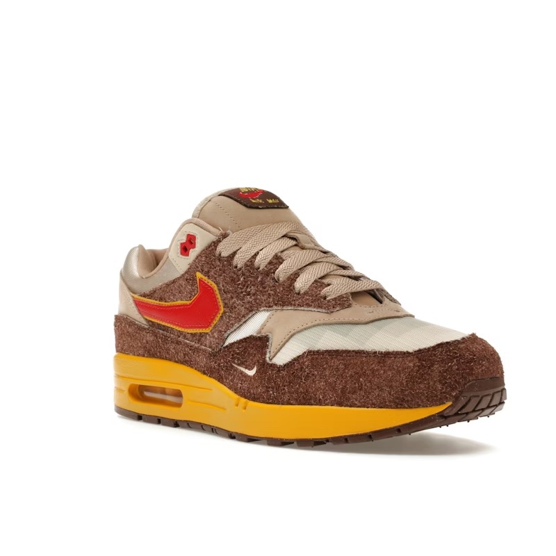 The Nike Air Max 1 .Swoosh Big Head Origins EU46-US12-UK11 taps into gaming nostalgia with a colorway inspired by pixelated aesthetics.
