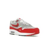 The Nike Air Max 1 SWOOSH Low Poly EU46-US12-UK11 is an exclusive low-profile sneaker dressed in a university red, white, and neutral grey color combo released with Nike.SWOOSH web portal.