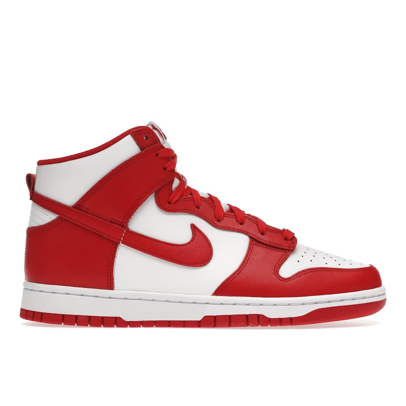 Similar to classic Dunks from the mid-1980's, the Nike Dunk high University Red EU46-US12-UK11 carries a more traditional look with a two-tone color blocked leather upper. At the base, a matching Air sole completes the design.