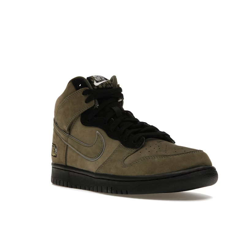 The Nike SB Dunk High Soulgoods EU46-US12-UK11 was released as part of Nike’s partnership with the Beijing-based streetwear label. This Nike Dunk High arrives in an Olive/Black/Khaki colorway.